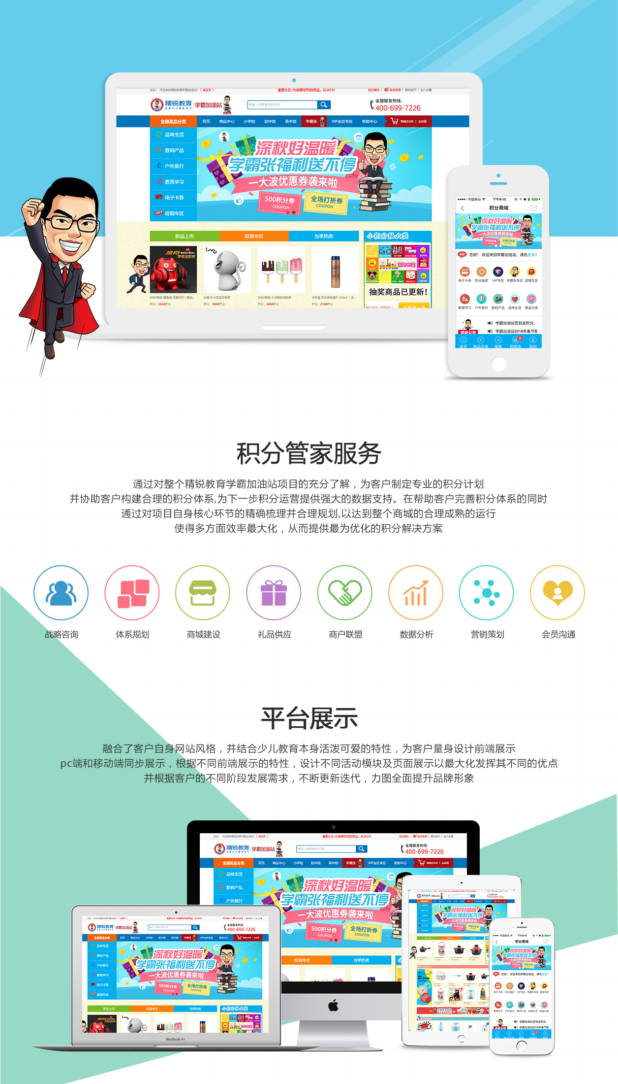 精锐教育是中国个性化教育市场的领军者、中国K12教育巨头之一,由哈佛、北大精英创立,并由全球著名投资集团贝恩资本注资,2013年与北京大学教育学院建立战略合作伙伴关系,专注于18岁以下孩子学习力的培养和提升,全国近200家学习中心。秉承颠覆式创新理念和互联网化运营模式,结合东西方教育的优势,融入哈佛商学院的案例教学法,创新性提出“以学为主,以教为辅,主动学习,趣味互动”的精锐教育四项基本原则,致力于打造快乐高效的第三课堂,搭建中国最大的O2O智能学习平台。积分做为一种对学员的的学习激励的奖励,已经成为精锐教育品牌服务的特色,精锐学霸加油站是学员兑换礼品,参与积分活动的主要平台,自2012年上线以来不断的根据学员的需求在礼品更新、活动开展、页面展示等方面进行创新改版,以适应更多的学员方便使用。